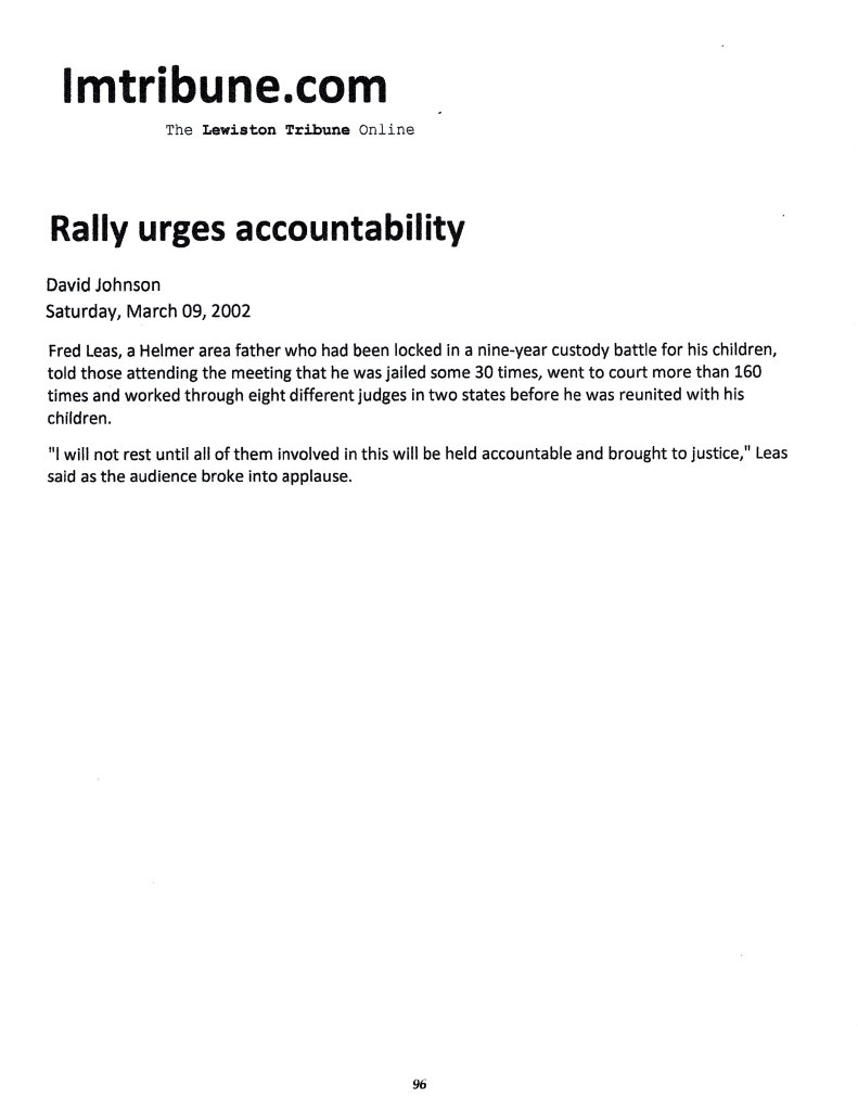 >>>>>January 15, 1998: A report of Mr. Fred L. Leas and the Latah Co. Legal System