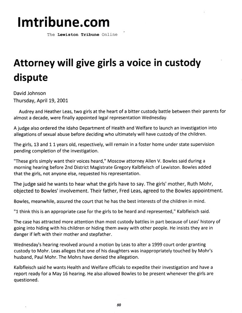 June 05, 2003: Leas takes case to Idaho Supreme Court