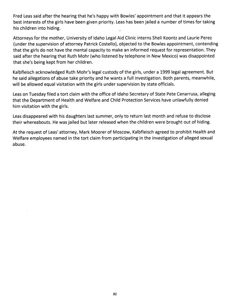 >>>>>January 15, 1998: A report of Mr. Fred L. Leas and the Latah Co. Legal System