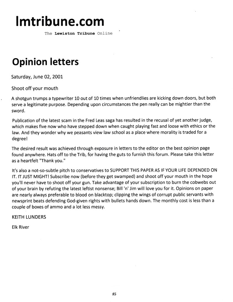 September 24, 1999: History of Fred Leas and the Latah Co. Legal System