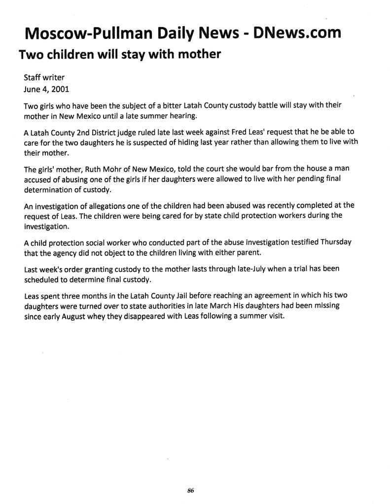 September 24, 1999: History of Fred Leas and the Latah Co. Legal System