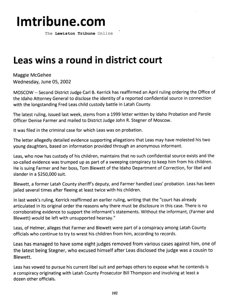 September 24, 1999: History of Fred Leas and the Latah Co. Legal System