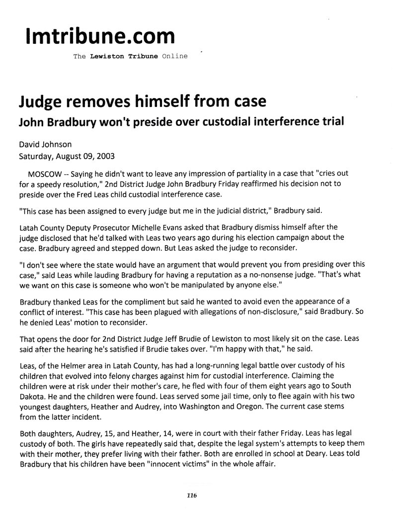 September 24, 1999: History of Fred Leas and the Latah Co. Legal System