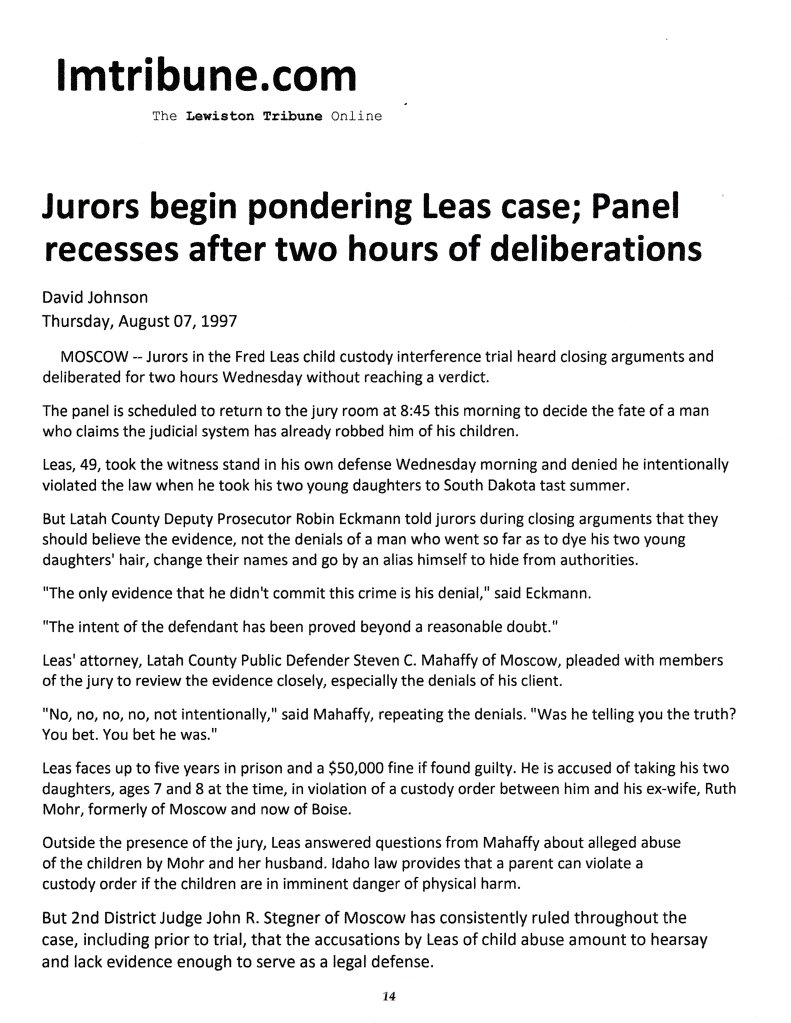 September 24, 1999: History of Fred Leas and the Latah Co. Legal System