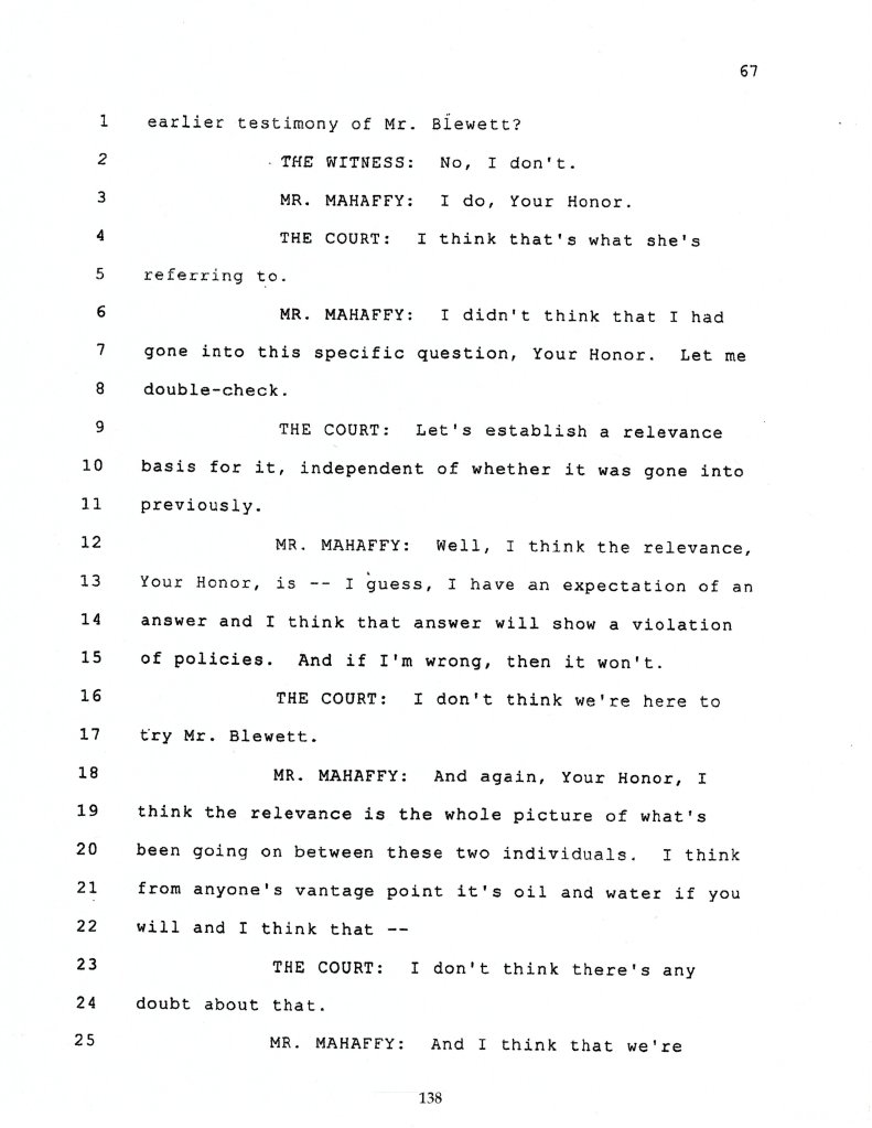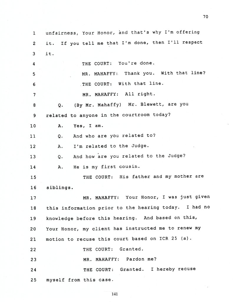 Exerpt from trial transcript referring to Judge’s recusal