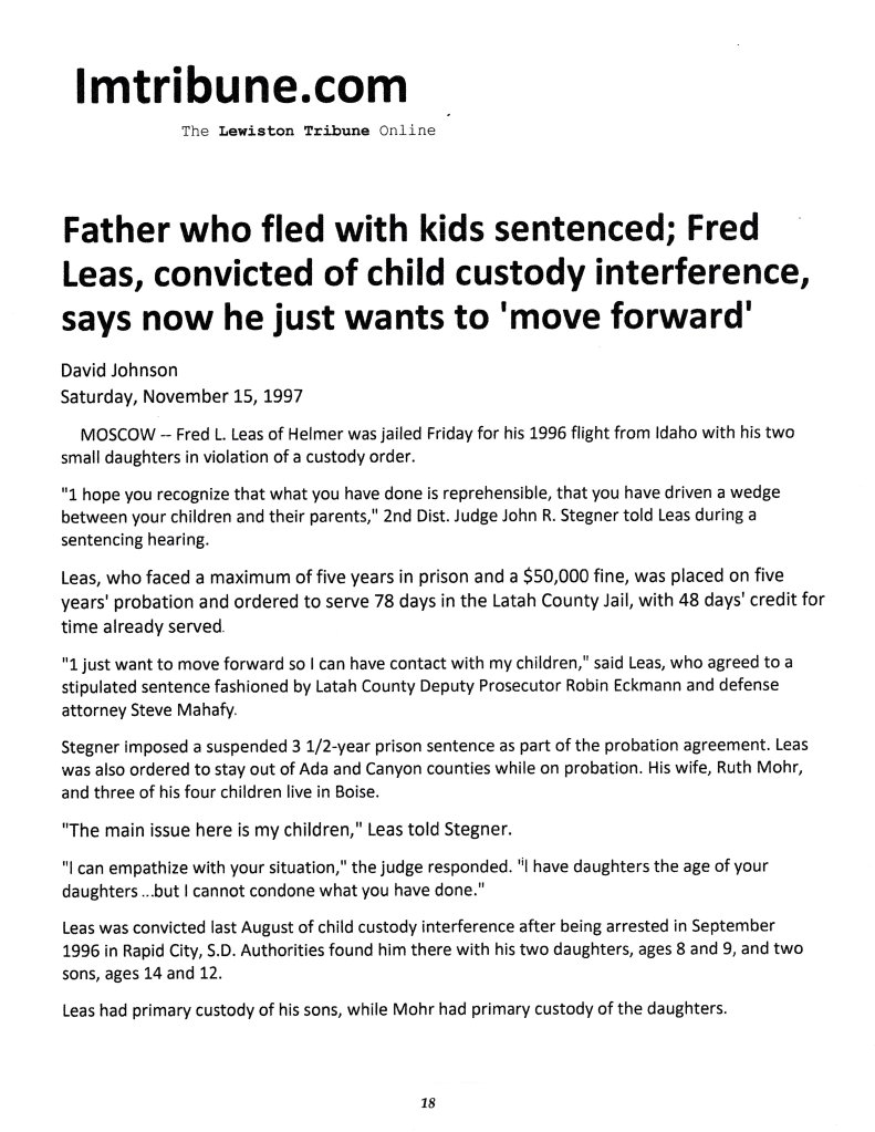 September 24, 1999: History of Fred Leas and the Latah Co. Legal System