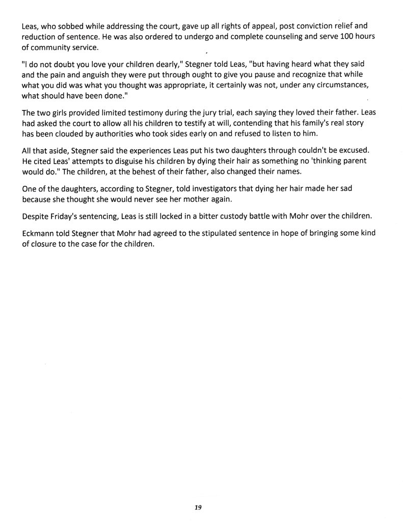 July 23, 2003: Stegner bows out, assigns Leas case to Judge Brudie