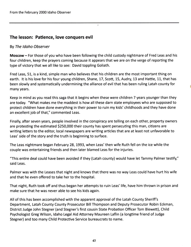 September 24, 1999: History of Fred Leas and the Latah Co. Legal System