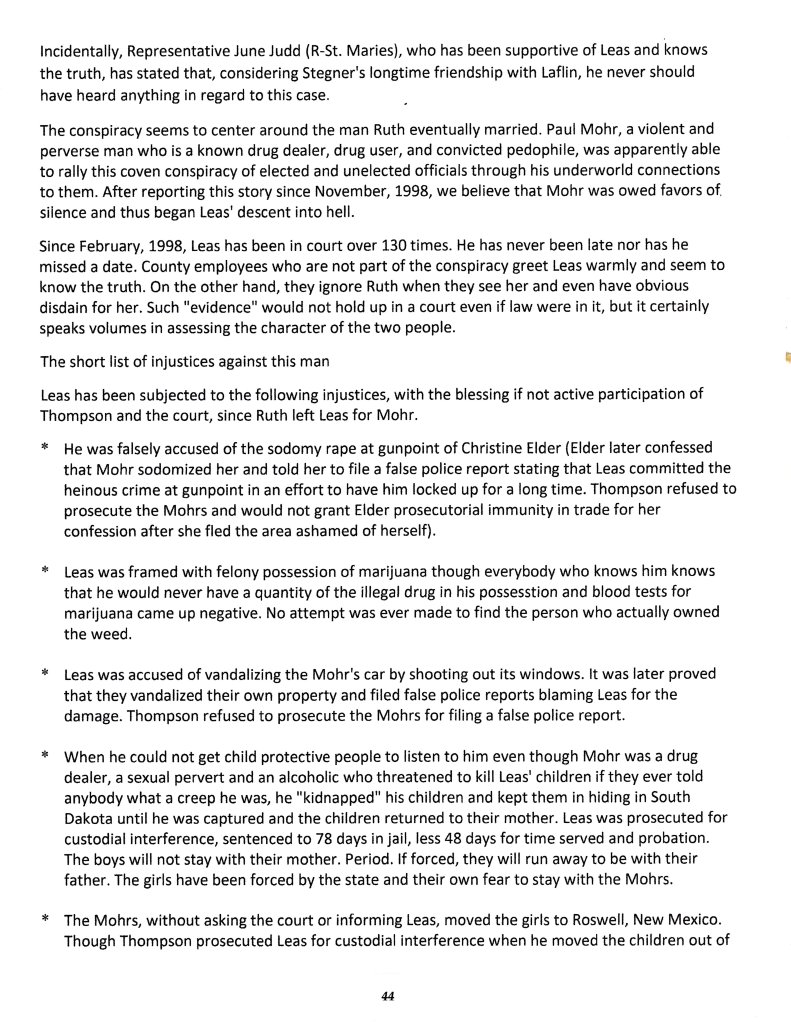 December 1998: Judge, Prosecutor ignore evidence to persecute Leas