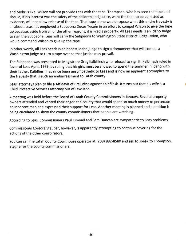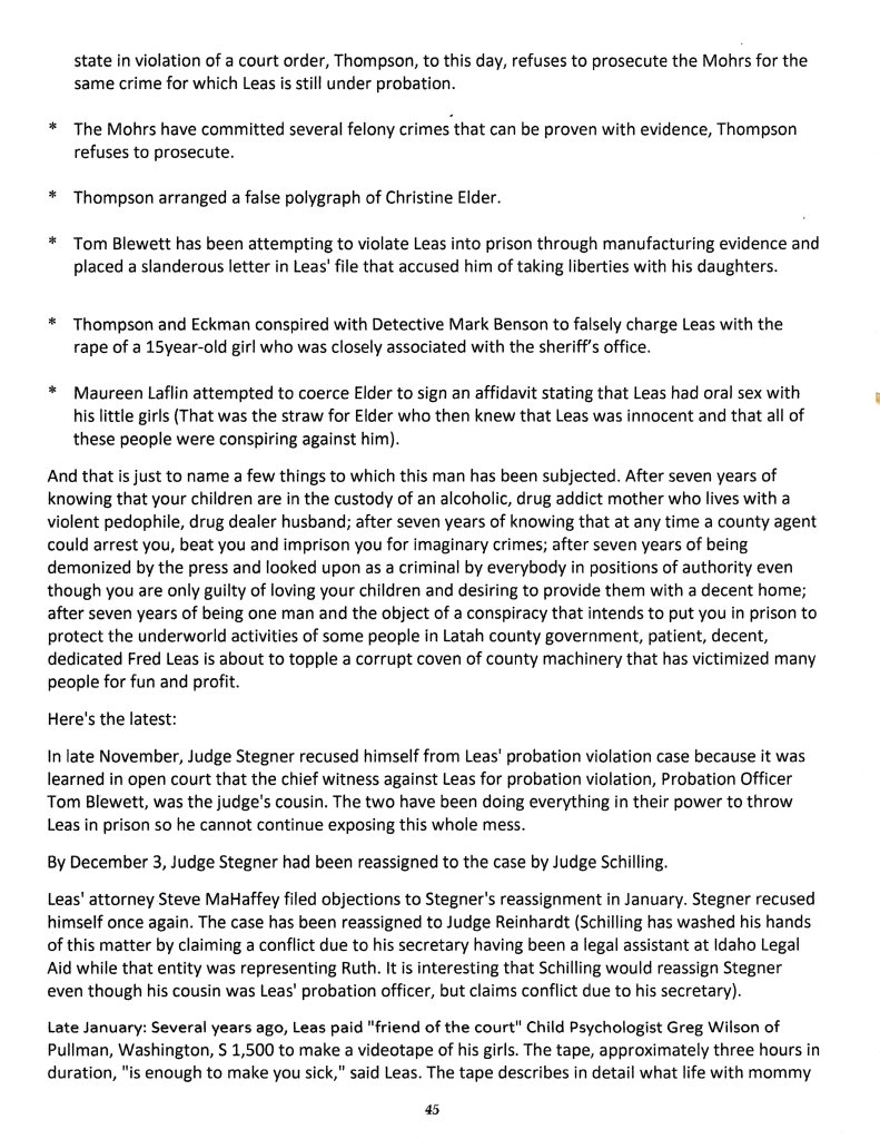 >>>>>January 15, 1998: A report of Mr. Fred L. Leas and the Latah Co. Legal System