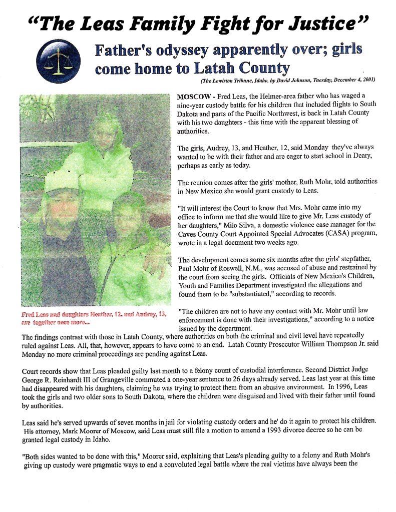 >>>>>January 15, 1998: A report of Mr. Fred L. Leas and the Latah Co. Legal System