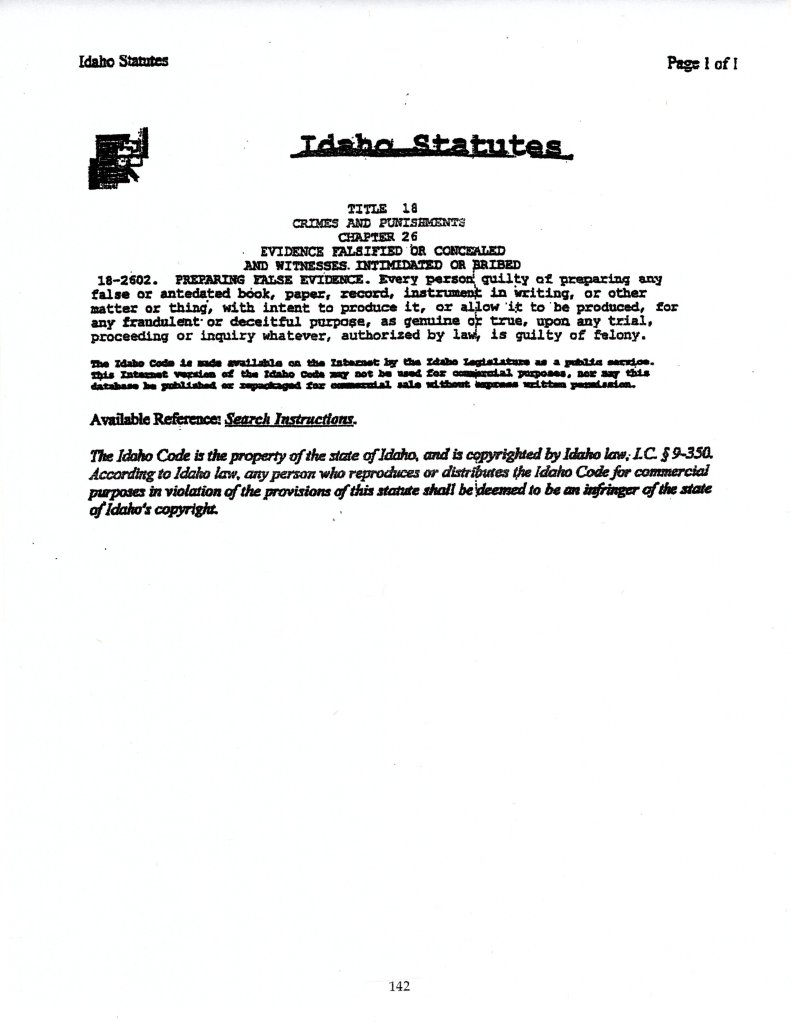 >>>>>January 15, 1998: A report of Mr. Fred L. Leas and the Latah Co. Legal System