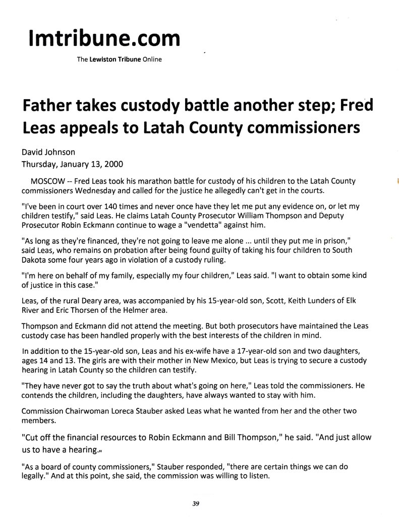 September 24, 1999: History of Fred Leas and the Latah Co. Legal System