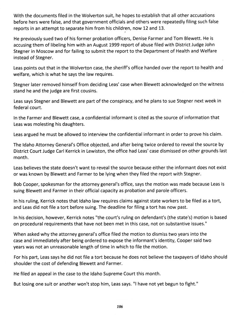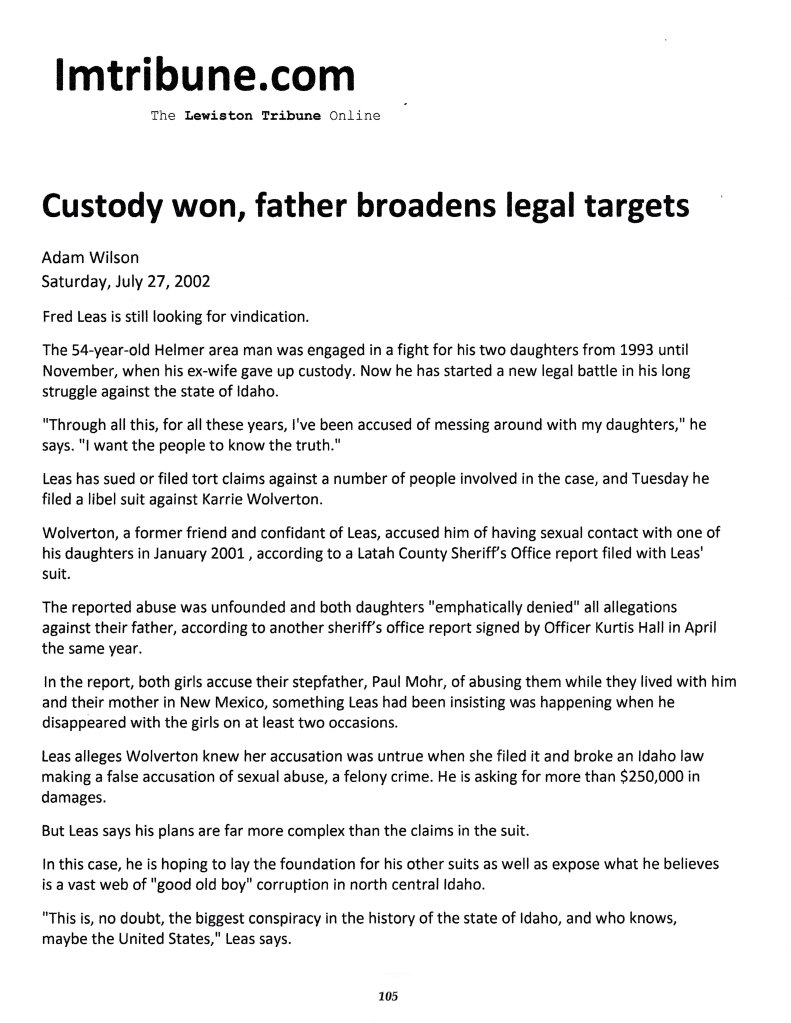 >>>>>January 15, 1998: A report of Mr. Fred L. Leas and the Latah Co. Legal System