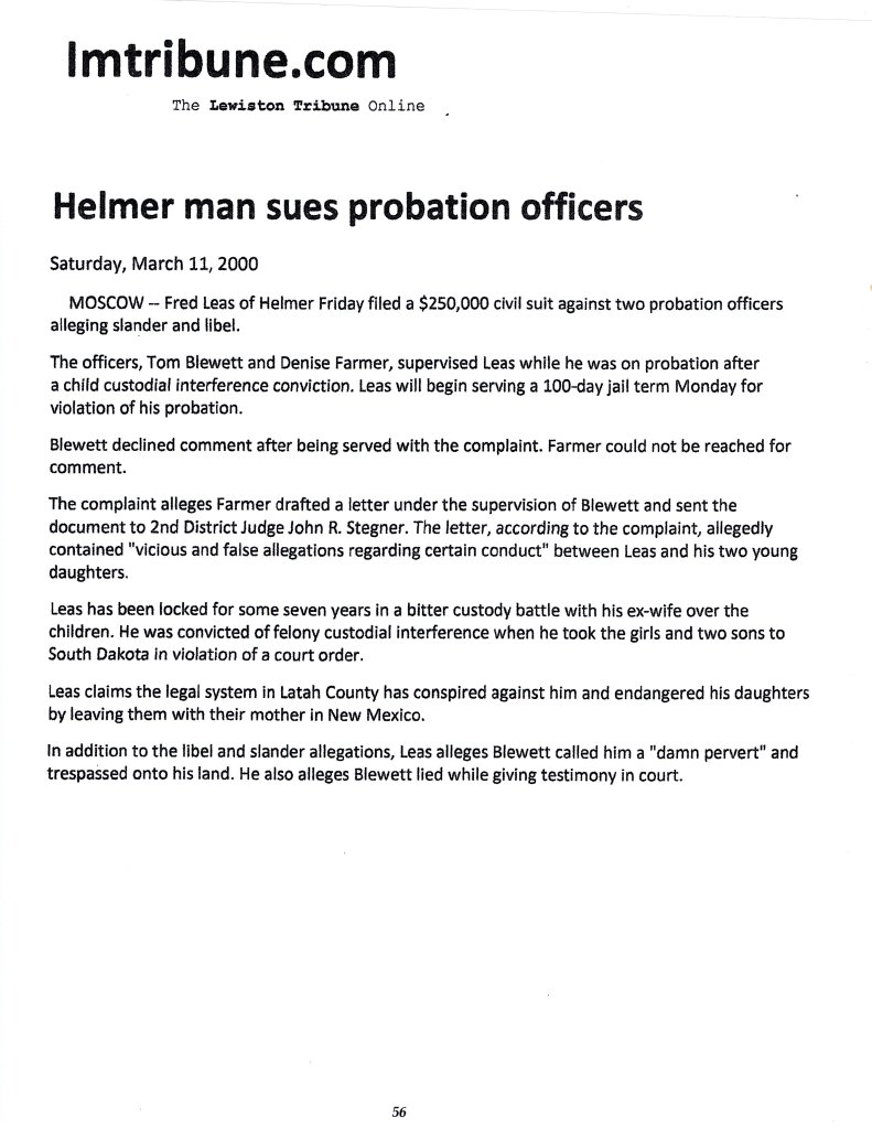 September 24, 1999: History of Fred Leas and the Latah Co. Legal System