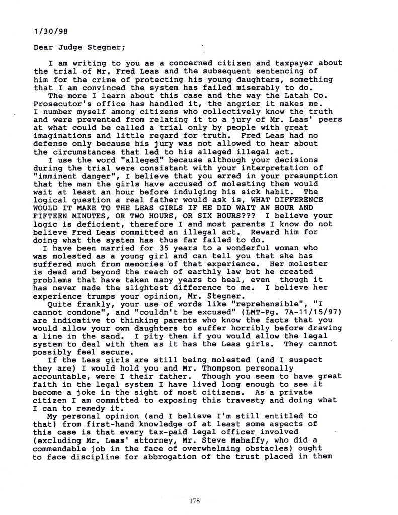 January 30, 1998: Letter to Judge Stegner