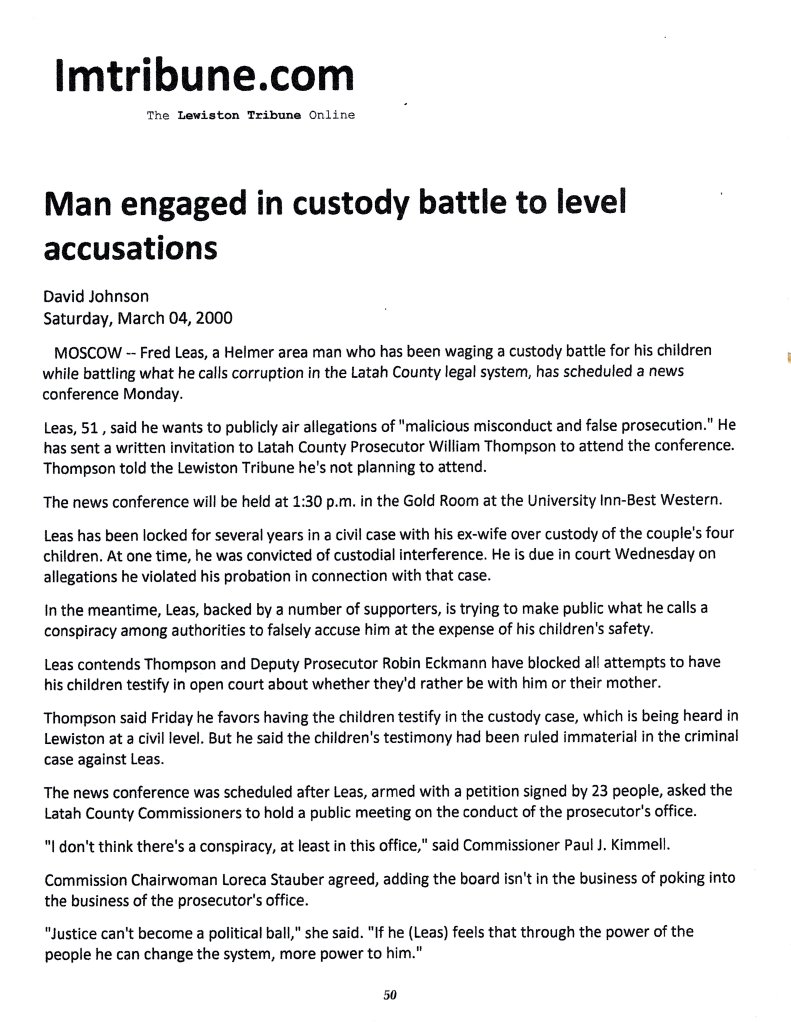 September 24, 1999: History of Fred Leas and the Latah Co. Legal System