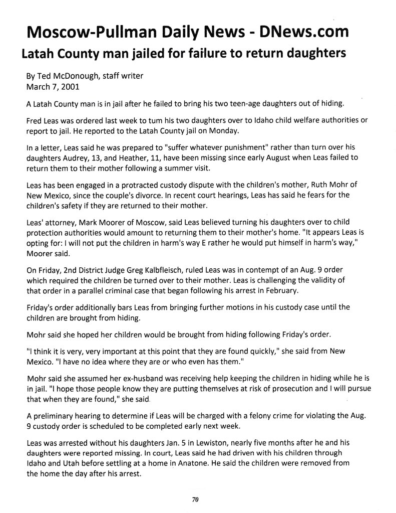 September 24, 1999: History of Fred Leas and the Latah Co. Legal System