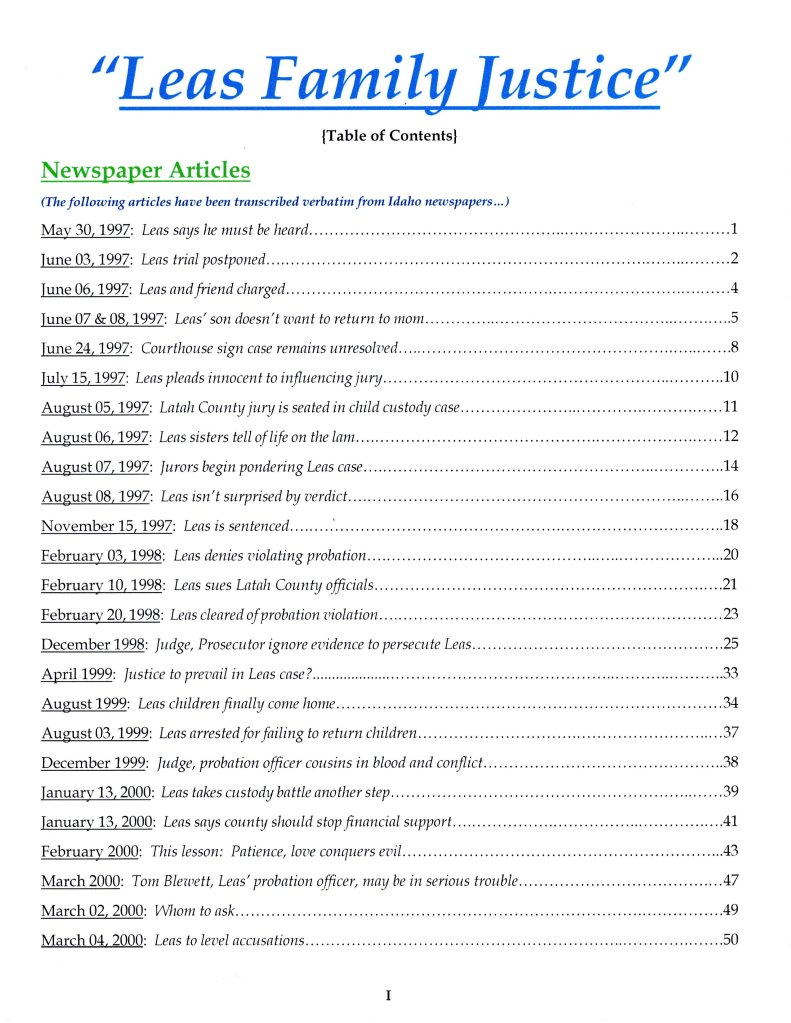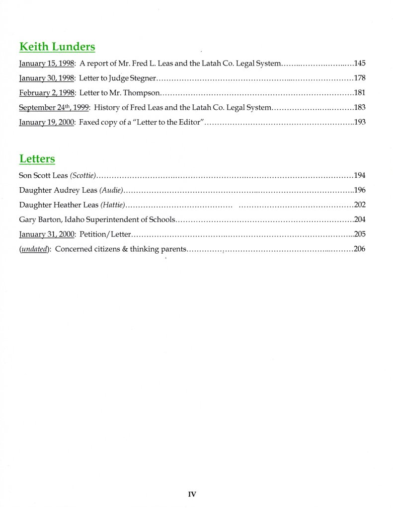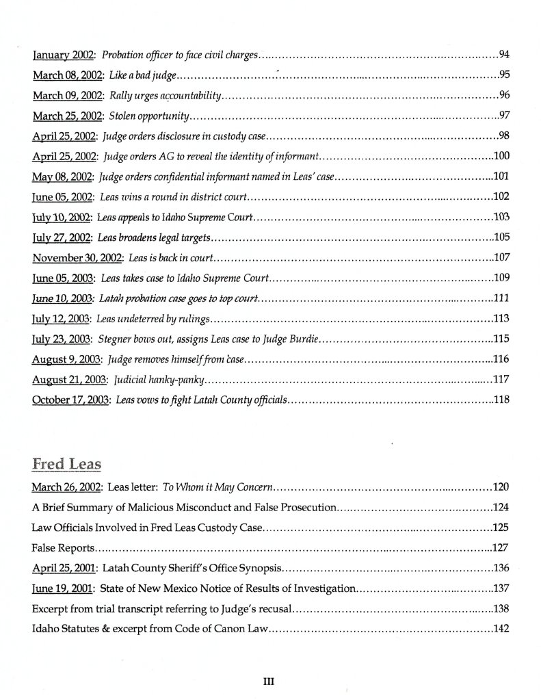 >>>>>January 15, 1998: A report of Mr. Fred L. Leas and the Latah Co. Legal System